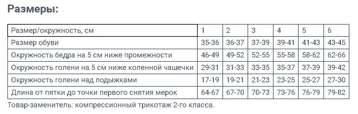 Колготки антиварикозные выполнены из комбинированных материалов. Антиварикозный трикотаж 2-го класса обладает компрессионным воздействием на подлежащие мягкие ткани (23–32 мм ртутного столба). Способствует нормализации оттока венозной крови за счет градуированной компрессии на мышцы и венозную стенку. В области щиколотки и голеностопного сустава компрессия составляет 100%, ниже коленного сустава компрессия уже 70%, а в верхней трети бедра – не более 40% от начального значения.